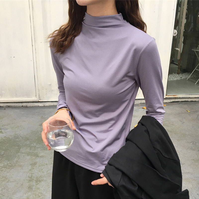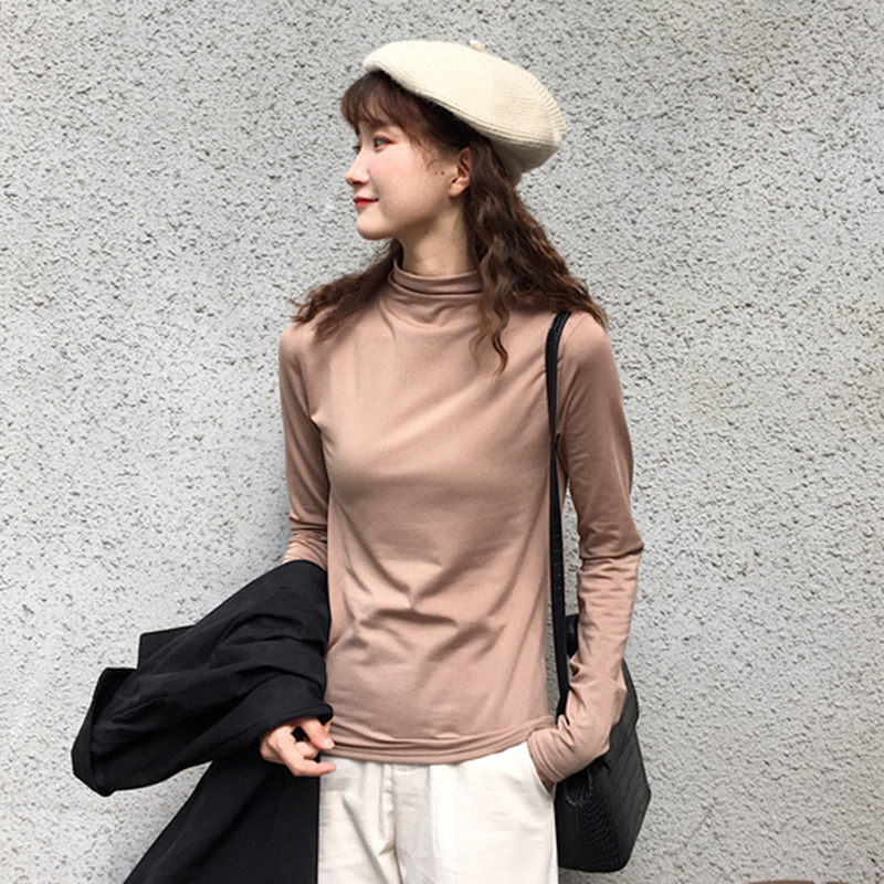 糖果色打底衫秋裝女2018新款韓版學生修身長袖T恤時尚半高領上衣