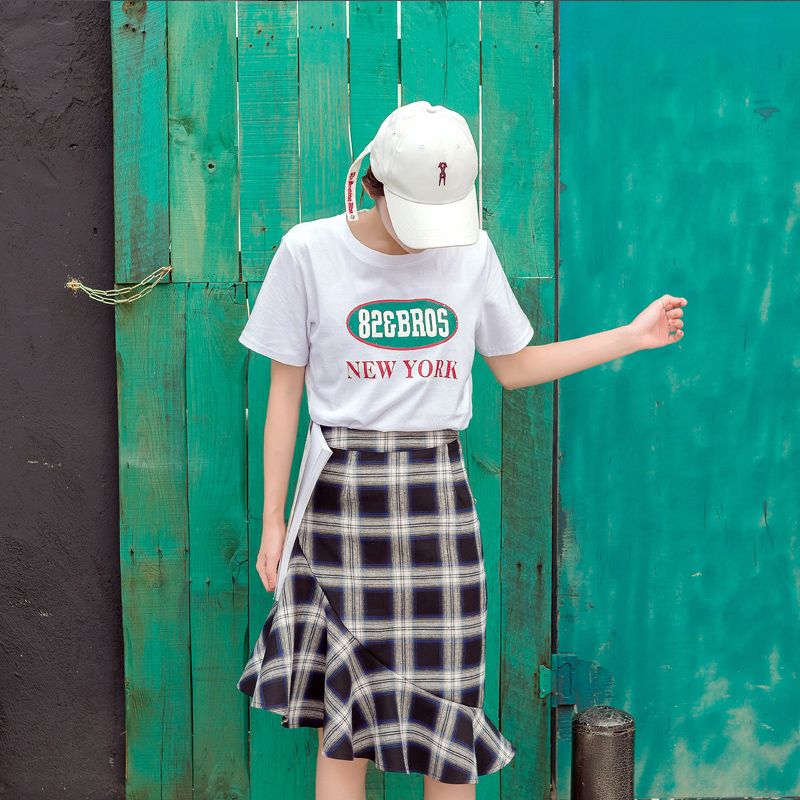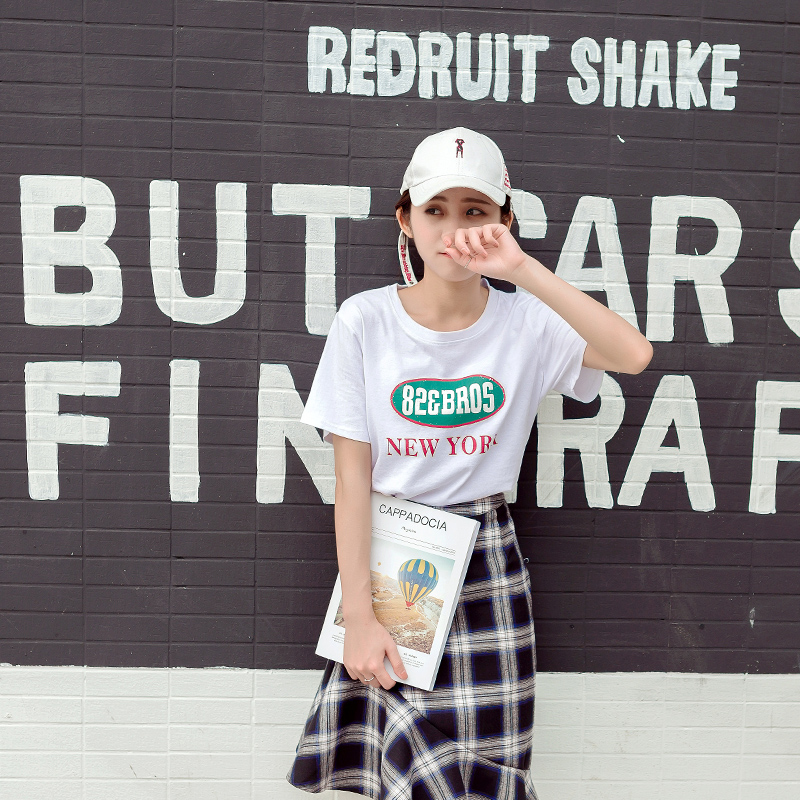 / 夏裝新款女裝韓版百搭圓領學生T恤簡約字母印花寬松bf風上衣