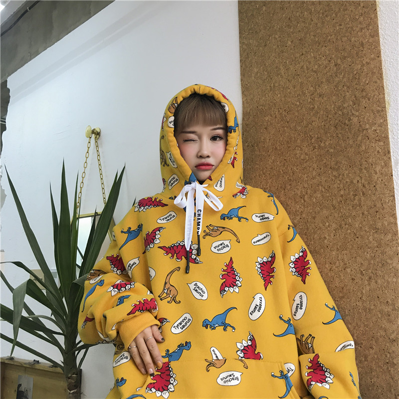 / 秋季女裝韓版原宿風小恐龍慵懶風寬松連帽pp home超火酷衛衣外套