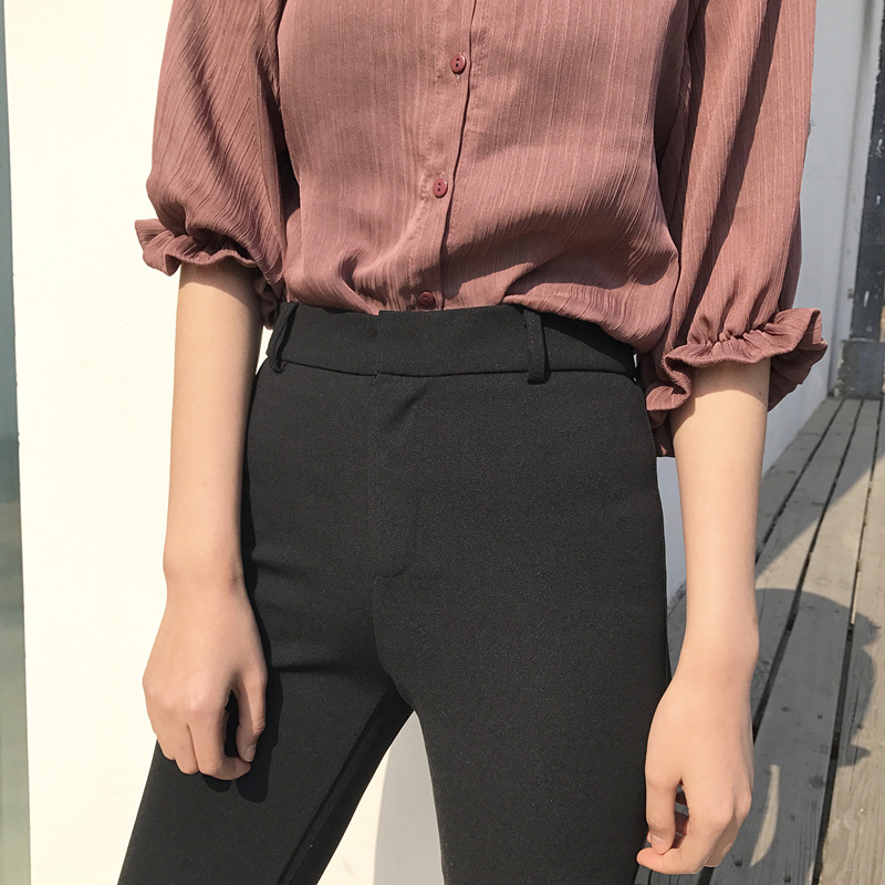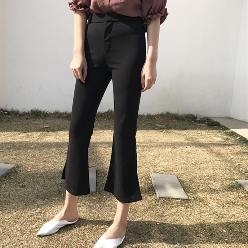 / 秋季新款復古韓國百搭純色顯瘦喇叭褲氣質風修身基礎休閑褲女裝潮