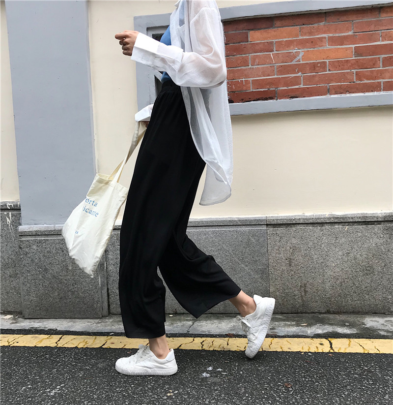 / 夏裝女裝韓版寬松松緊腰高腰闊腿褲薄款休閑褲九分褲直筒褲長褲潮