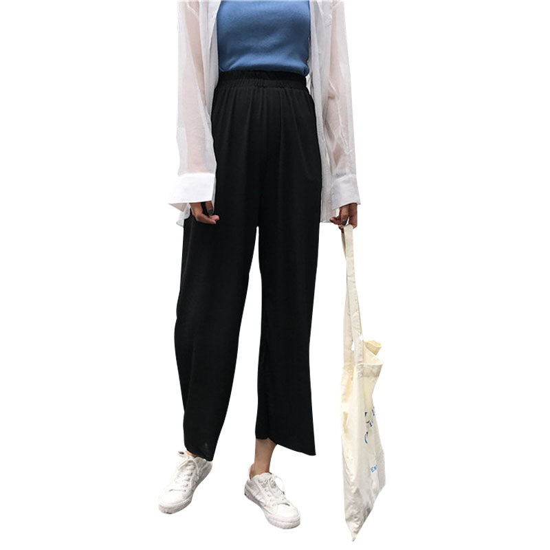 夏裝女裝韓版寬松松緊腰高腰闊腿褲薄款休閑褲九分褲直筒褲長褲潮