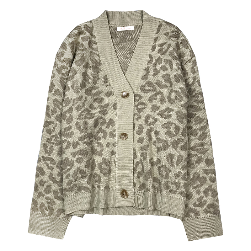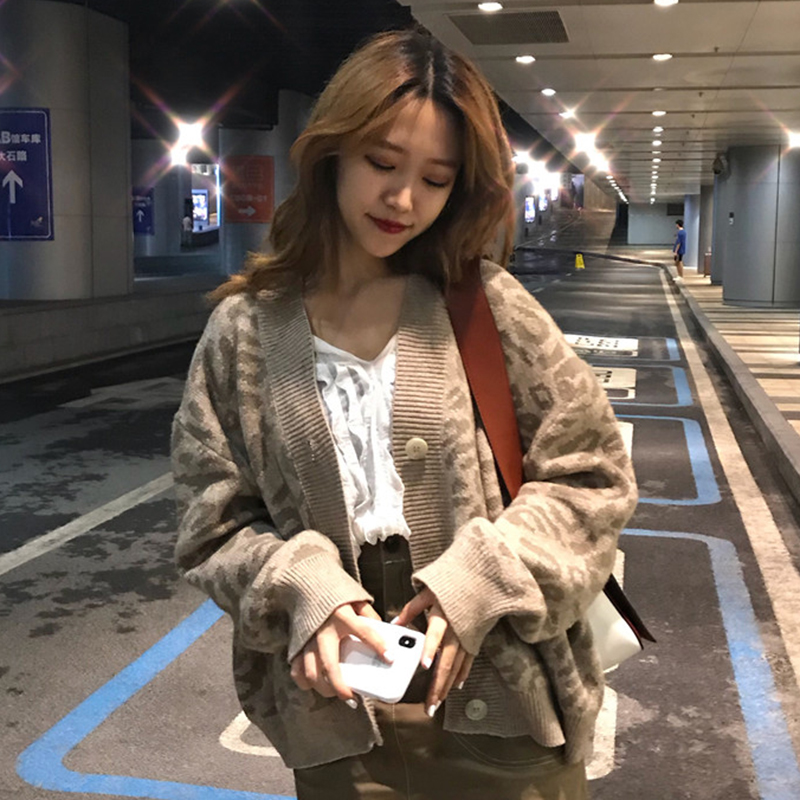 慵懶風毛衣秋裝女2018新款時尚豹紋長袖針織開衫學生寬松休閑外套