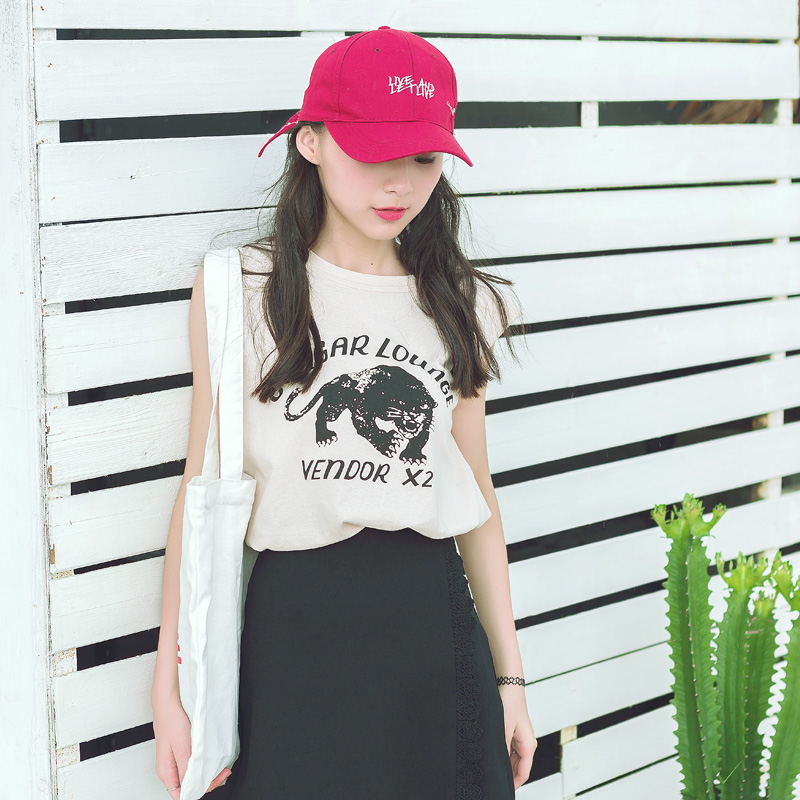 / 夏裝新款韓版寬松百搭印花無袖T恤女學生簡約背心上衣女裝潮