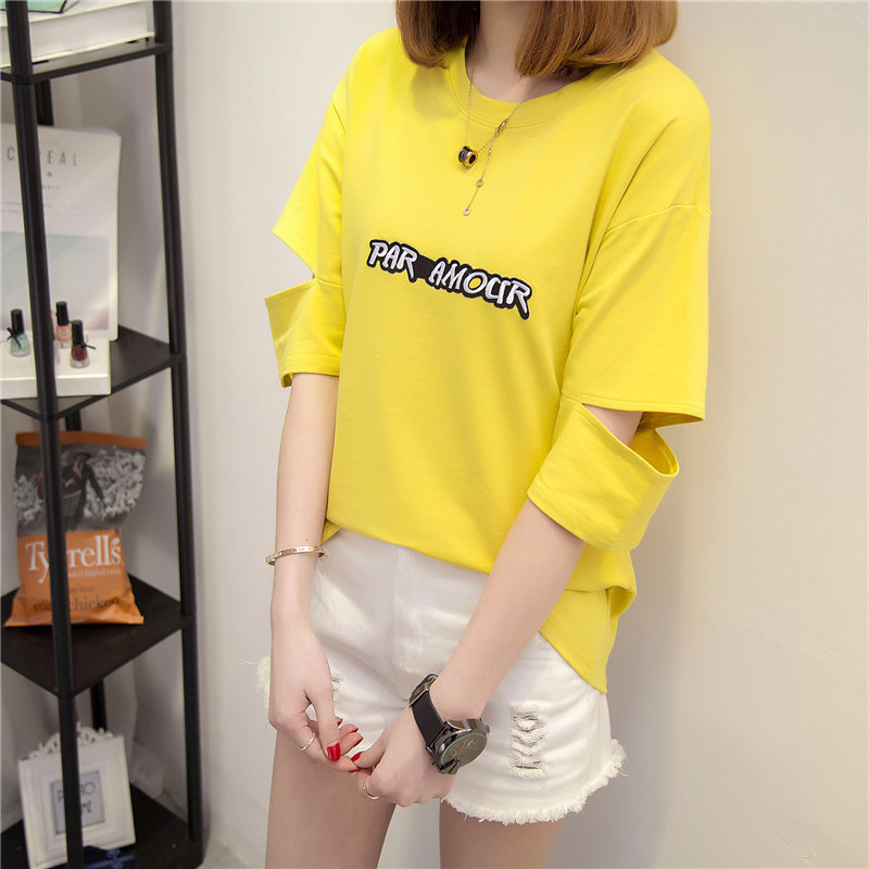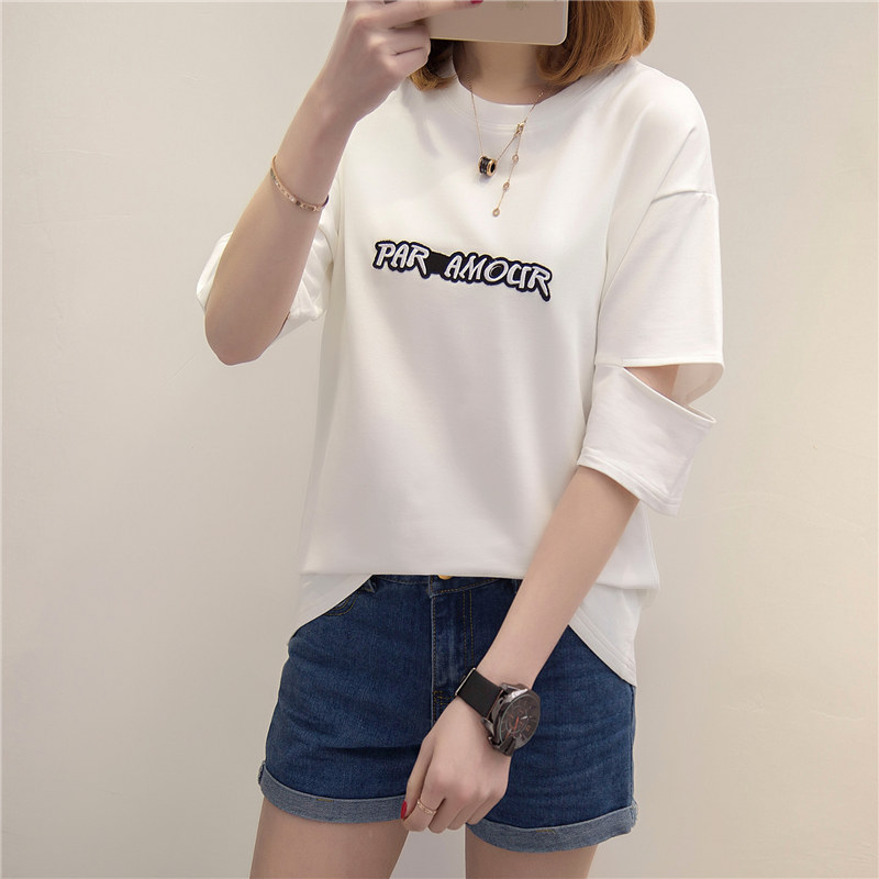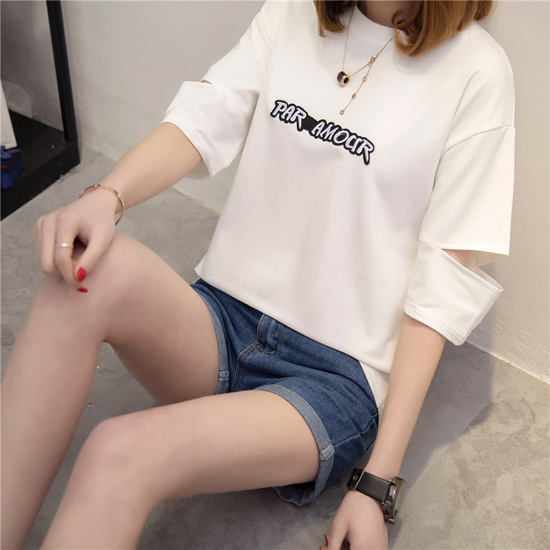 / 夏裝新款女白色t恤中長袖打底衫女上衣春鏤空打底體恤小衫女
