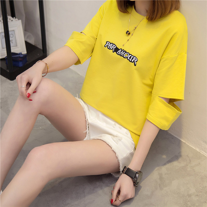夏裝新款女白色t恤中長袖打底衫女上衣春鏤空打底體恤小衫女