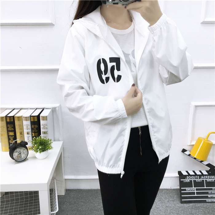 / 防曬衣女2017夏裝韓版百搭寬松bf字母印花防曬服休閑連帽薄外套潮