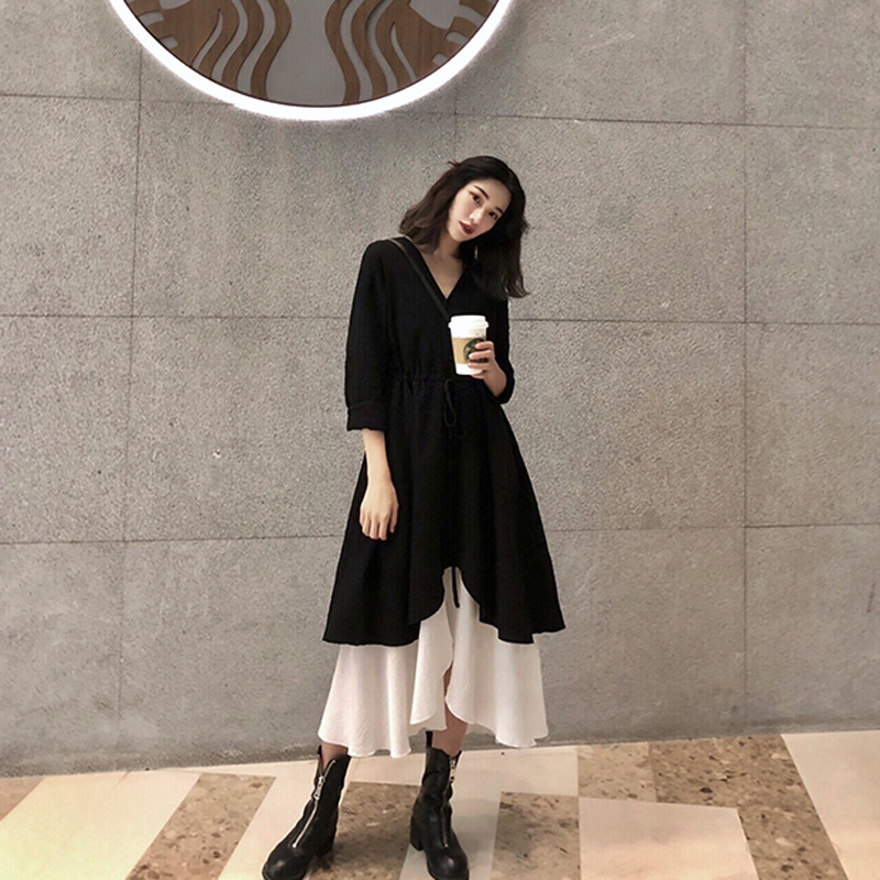 / 秋裝女2018新款法國小眾女復古氣質桔梗裙法式兩件套裝連衣裙早秋