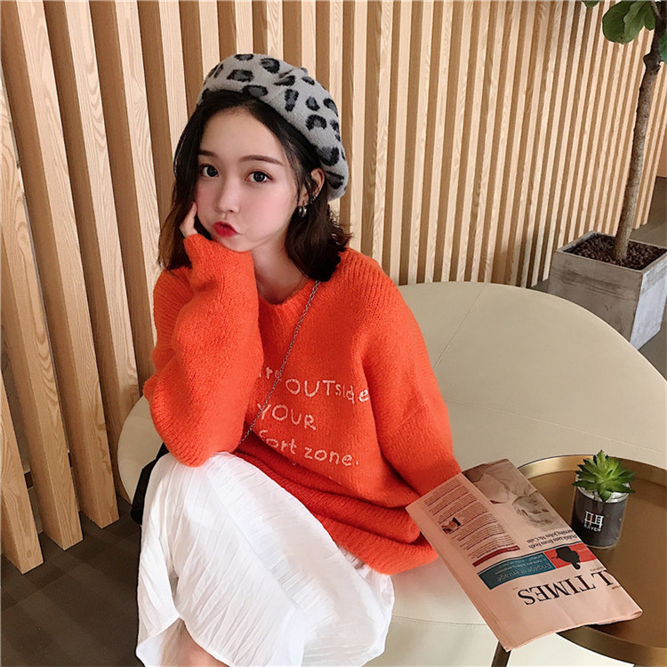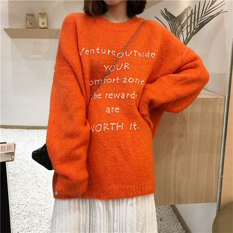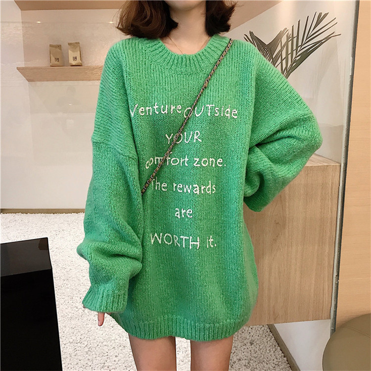 秋冬韓版中長款慵懶風寬松字母網紅套頭超火針織衫毛衣上衣外套女