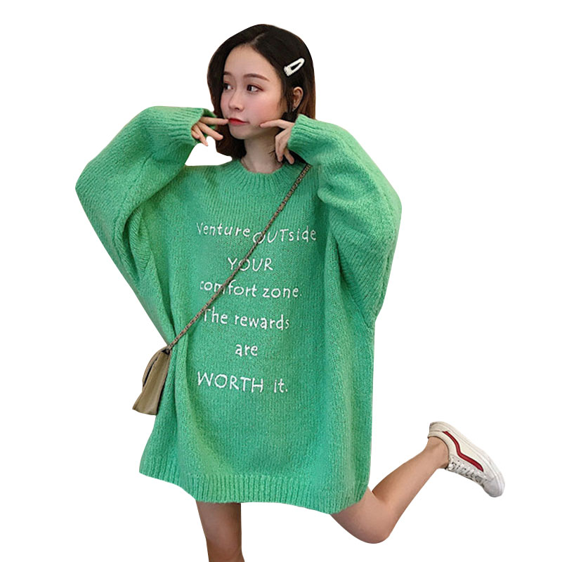 / 秋冬韓版中長款慵懶風寬松字母網紅套頭超火針織衫毛衣上衣外套女