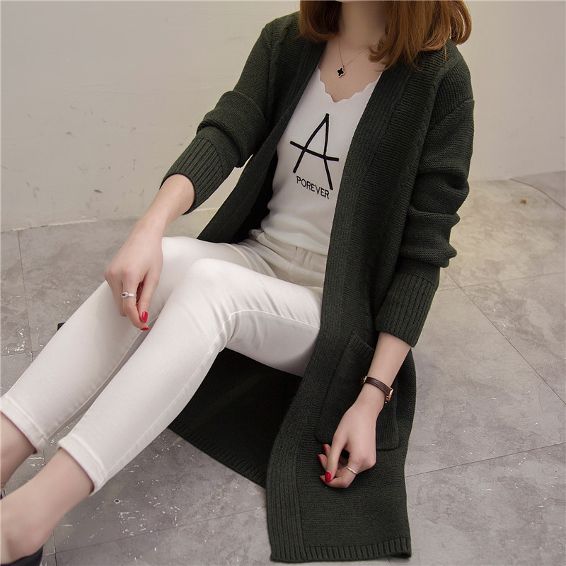 女裝寬松韓版休閑中長款毛衣開衫女針織衫春裝外套女裝新款潮