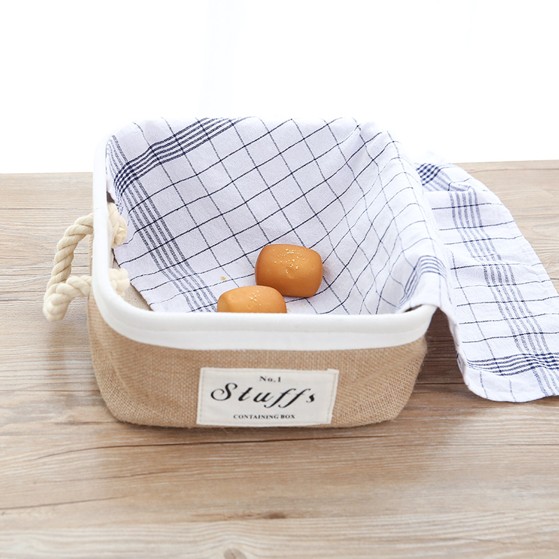 黃麻收納筐收納籃雜物零食整理盒創意簡約日韓桌面收納盒