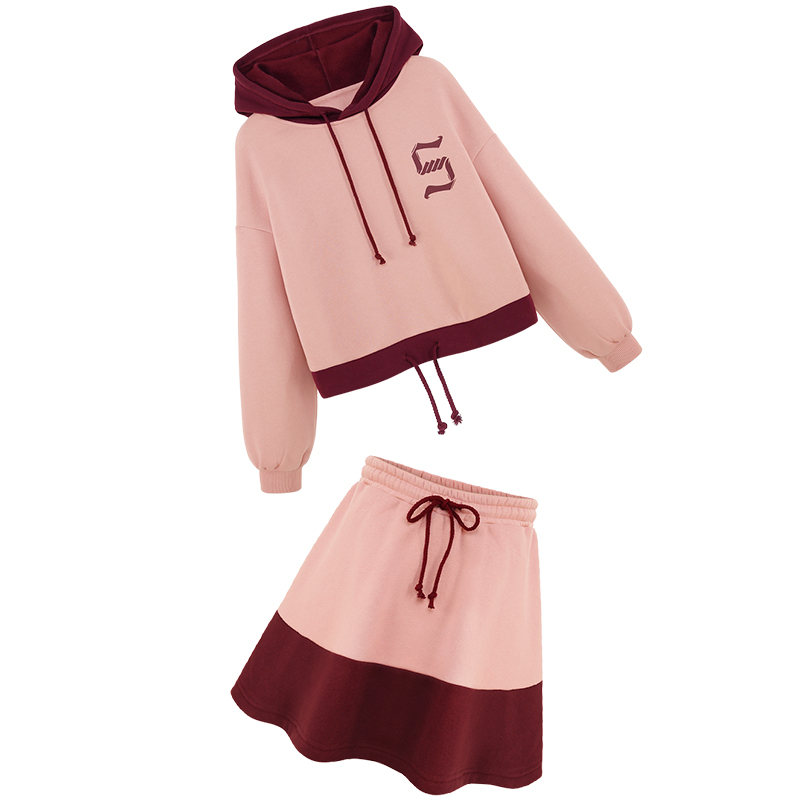 MG小象休閑連帽衛衣女冬季新款高腰半身短裙學生寬松短款套頭上衣