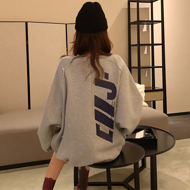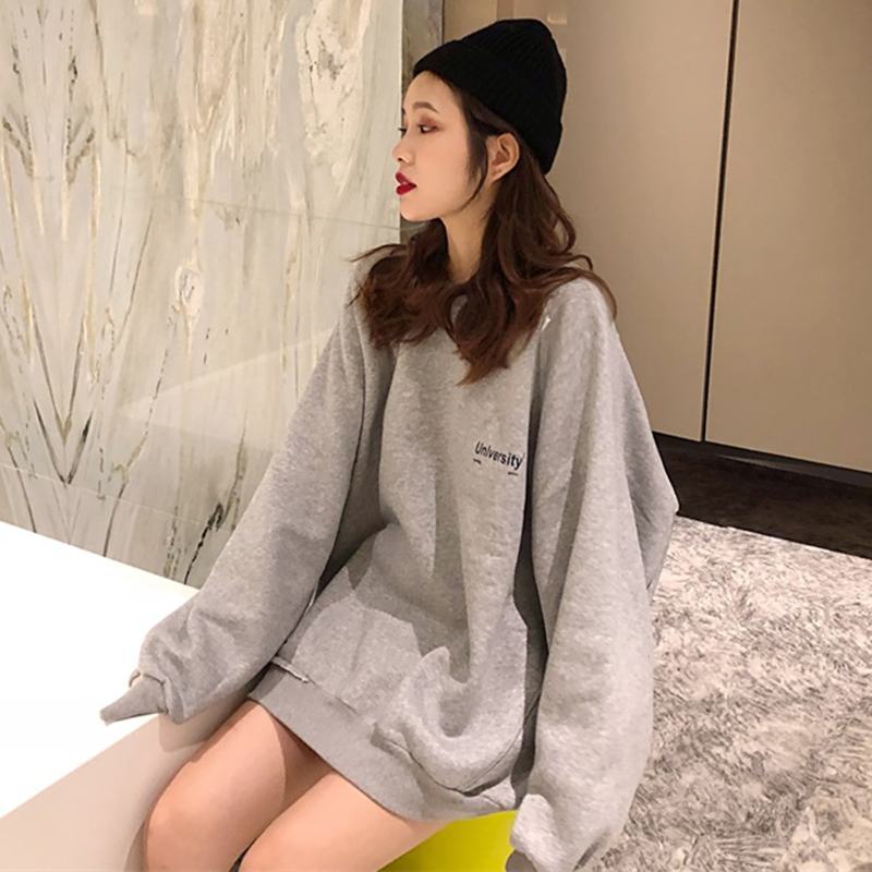 寬松顯瘦圓領長袖衛衣2018新款女秋冬裝加絨字母外套學生時尚上衣