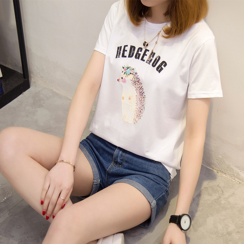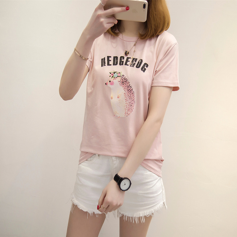 / 夏裝新款女裝純色韓版卡通t恤女短袖上衣女夏百搭打底衣服女