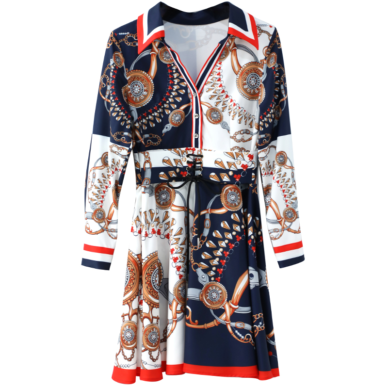 名媛2018新款女神范氣質顯瘦腰封女裝秋裝不規則襯衫中長款連衣裙