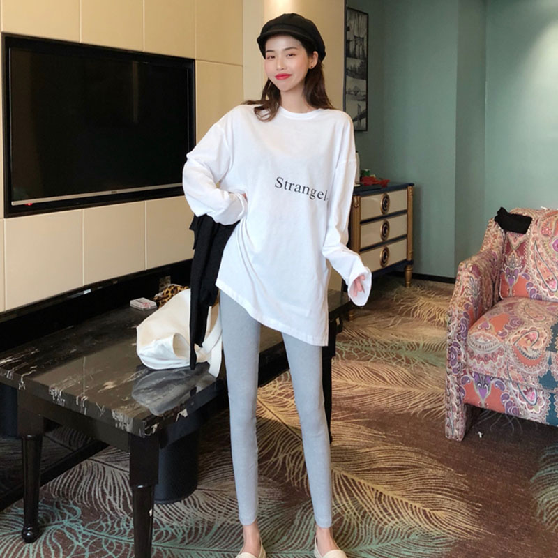 秋裝女2018新款短袖t恤學生寬松顯瘦長袖白色打底衫中長款上衣潮