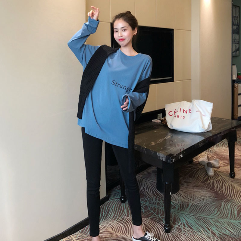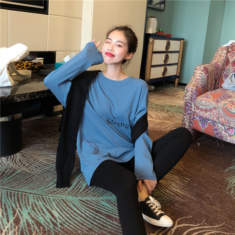 初秋上衣韓版寬松顯瘦百搭長袖打底衫女T恤字母印花時尚打底Tee潮