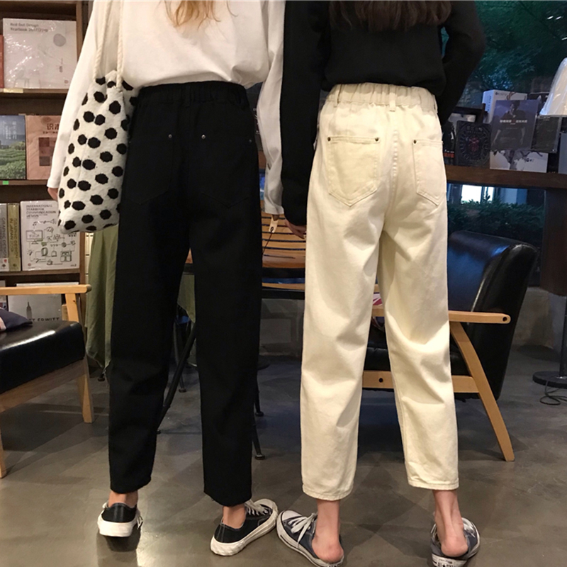 / 黑色牛仔褲女秋裝2018新款韓版寬松蘿卜哈倫褲子學生高腰直筒長褲