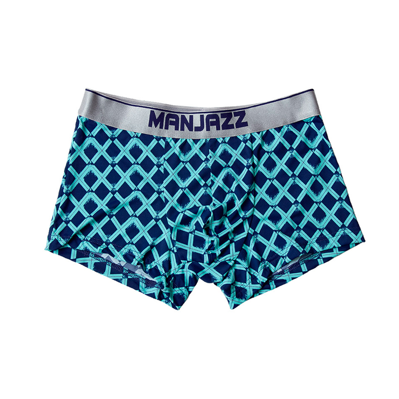 菱格紋運動透氣冰絲男士內褲無痕純棉襠抗菌四角短褲中腰男士底褲