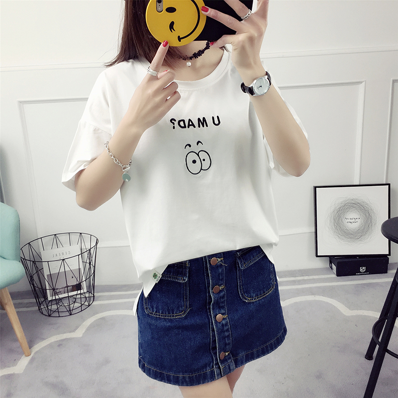 / 字母短袖t恤女夏季韓版百搭新款夏裝衣服寬松顯瘦學生體恤衫