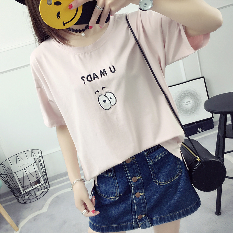 字母短袖t恤女夏季韓版百搭新款夏裝衣服寬松顯瘦學生體恤衫