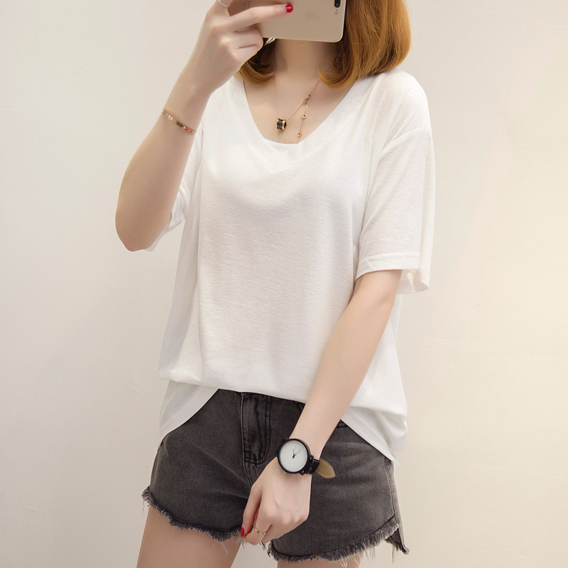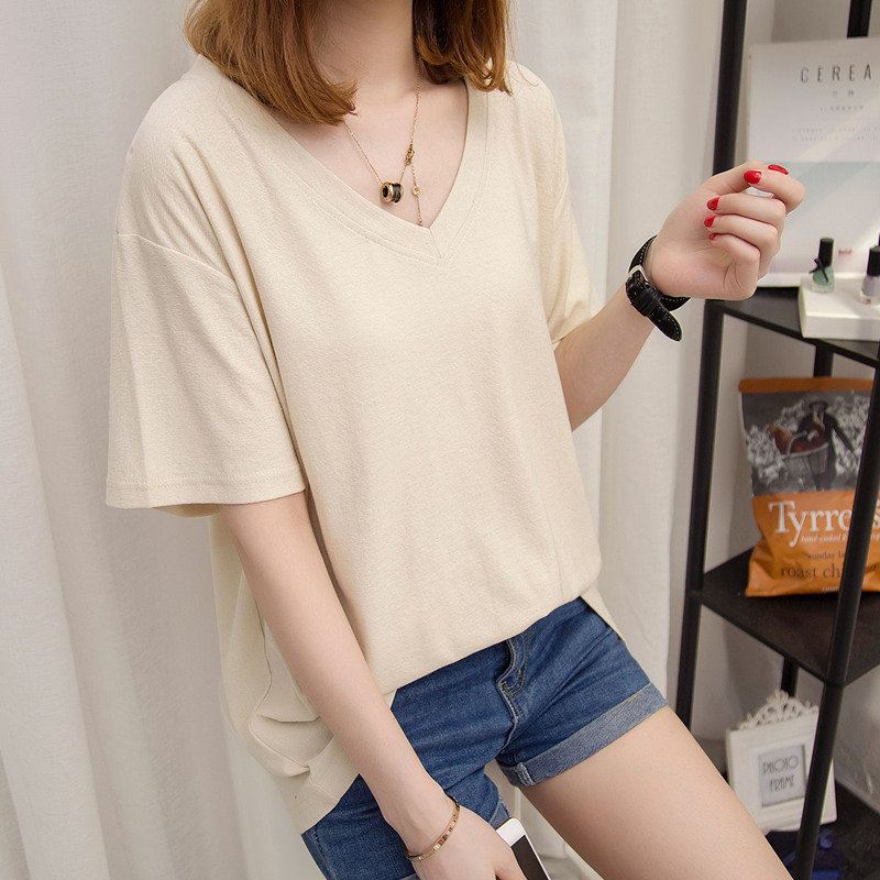 / 夏裝新款女上衣純色V領寬松白色bft恤女短袖衣服女夏體恤衫潮
