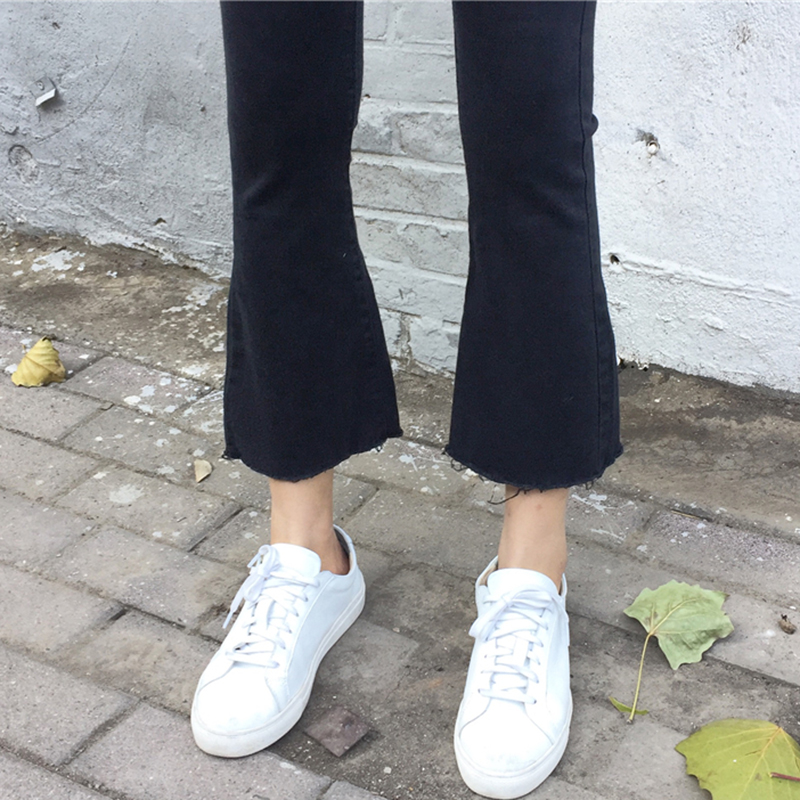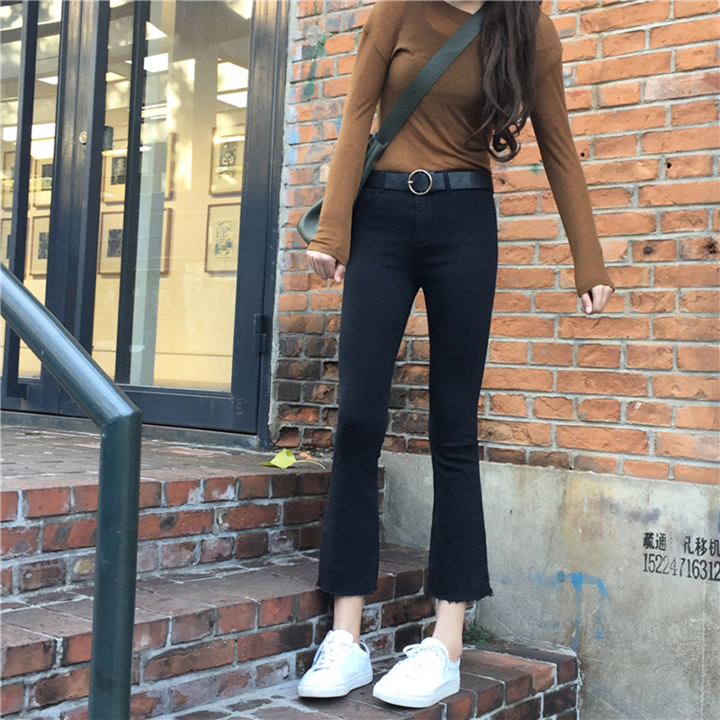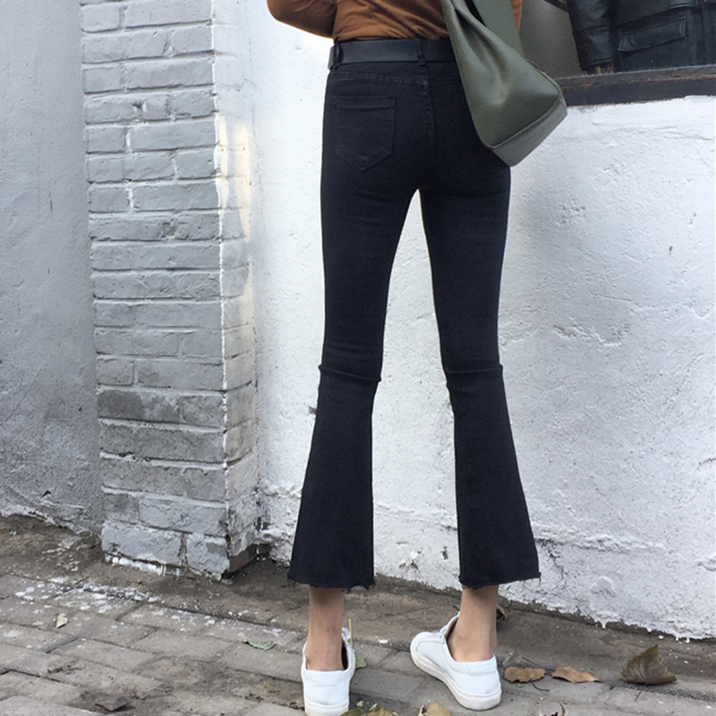 / 牛仔褲女夏新款韓版女裝休閑百搭黑色微喇叭褲高腰顯瘦毛邊九分褲