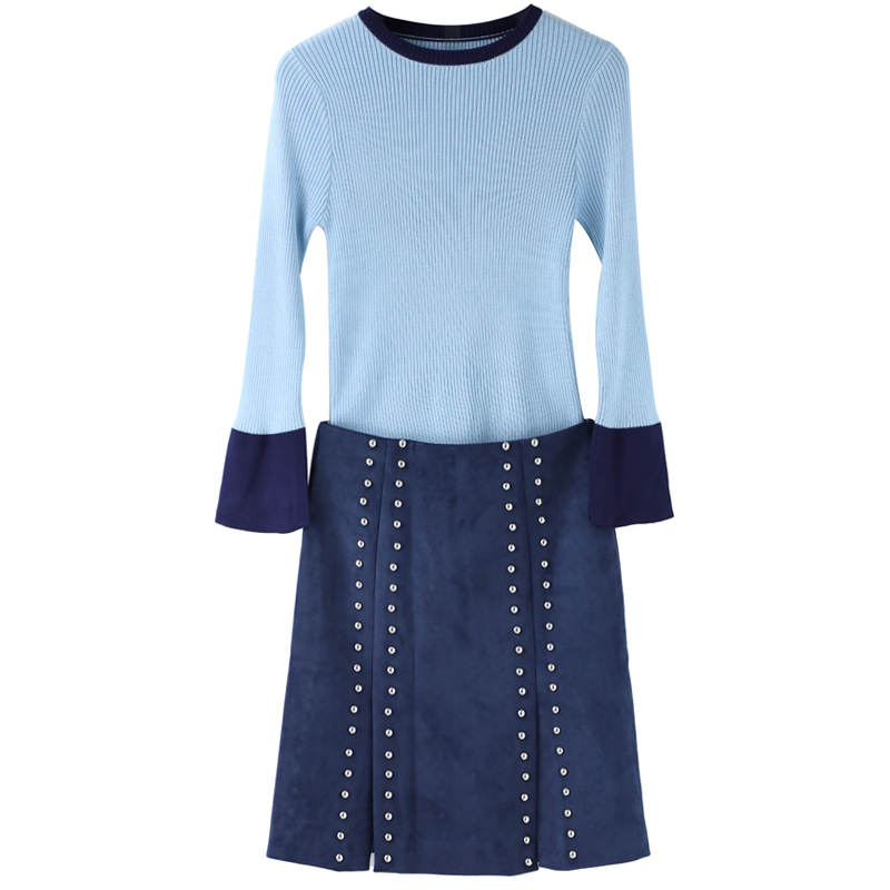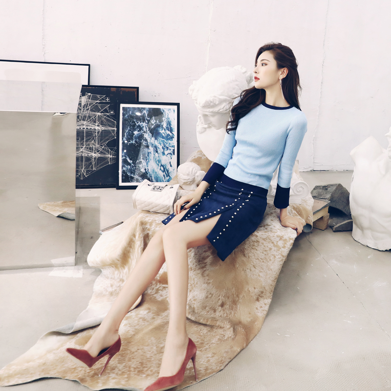 / 兩件套2018春秋時尚新款俏皮針織衫毛衣上衣高腰短裙半身裙女套裝