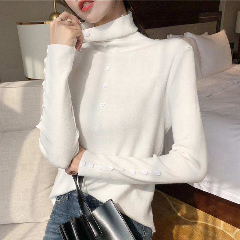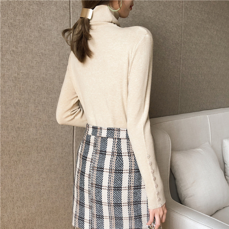 氣質修身高領打底衫秋裝女2018新款港味學生長袖T恤簡約純色上衣