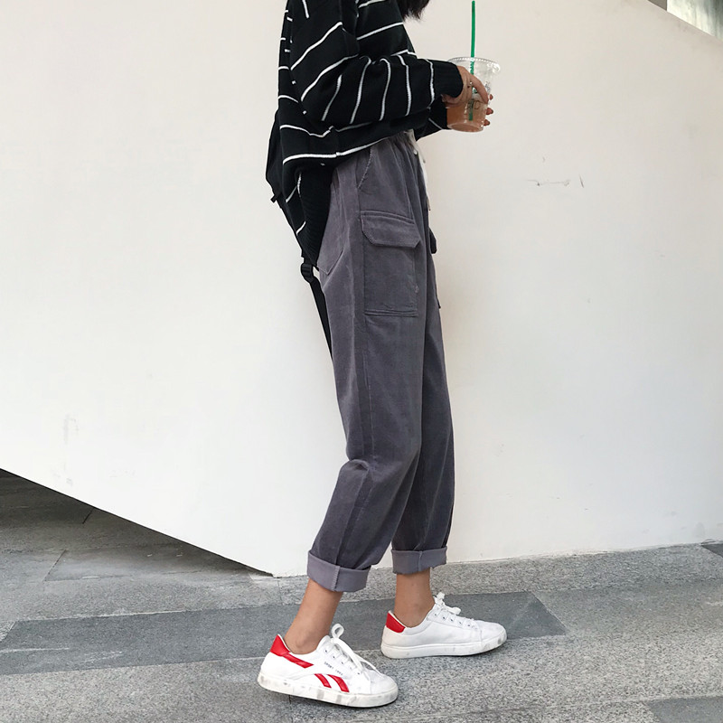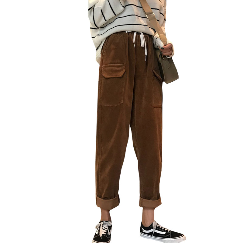 / 秋冬韓版寬松燈芯絨松緊腰哈倫褲直筒褲高腰闊腿褲長褲學生褲子女