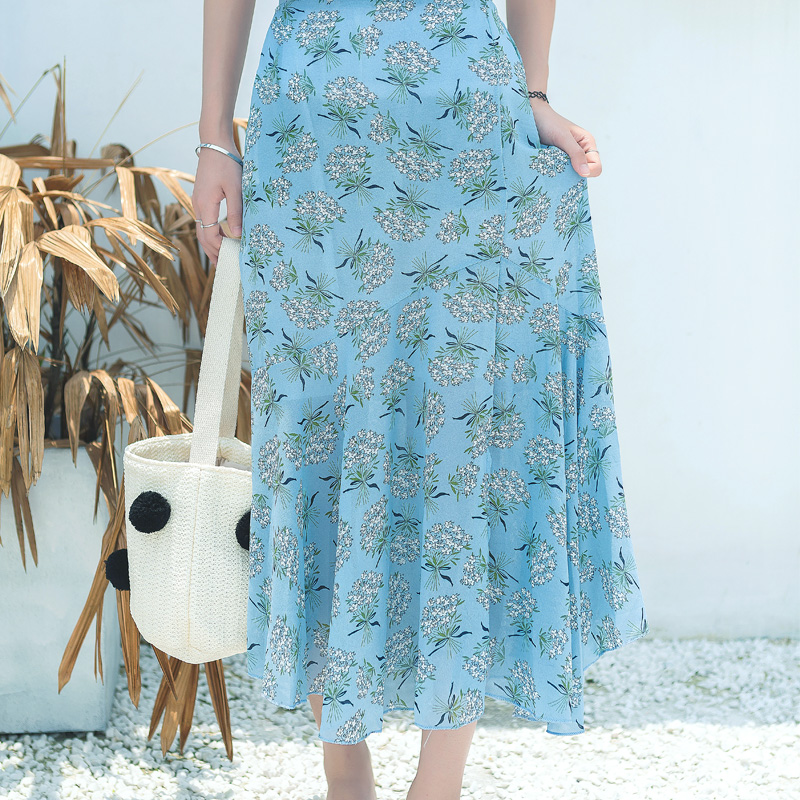 夏裝新款韓版女裝荷葉邊雪紡碎花半身裙a字不規則魚尾裙子潮