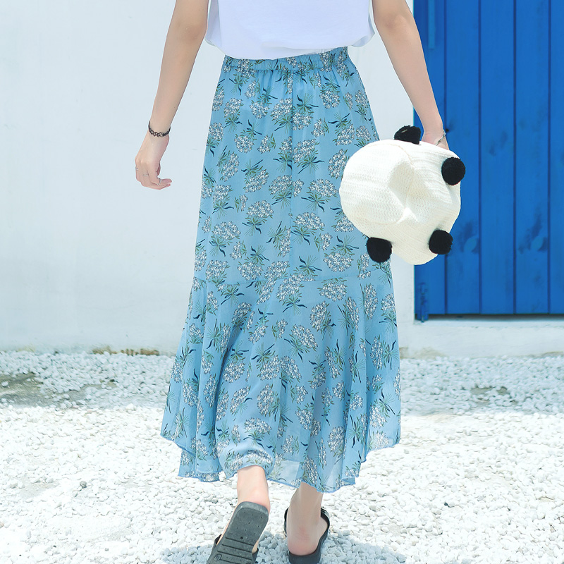 / 夏裝新款韓版女裝荷葉邊雪紡碎花半身裙a字不規則魚尾裙子潮