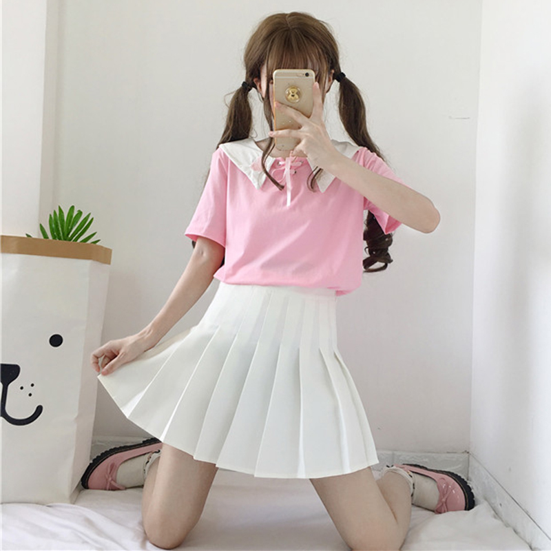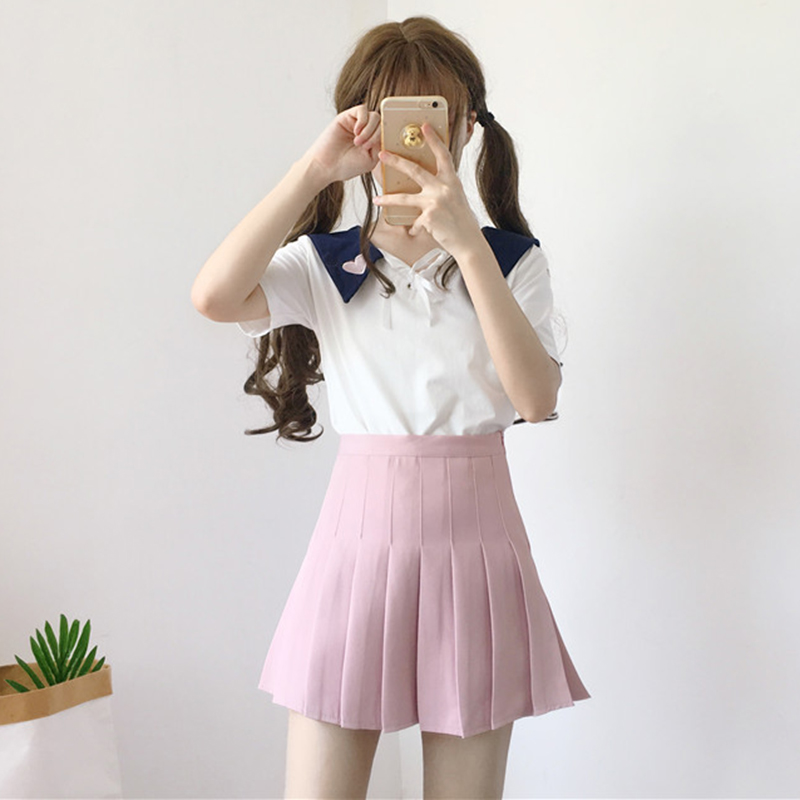 / 百褶裙女夏季新款女裝韓版學院風百搭高腰顯瘦純色學生A字半身裙