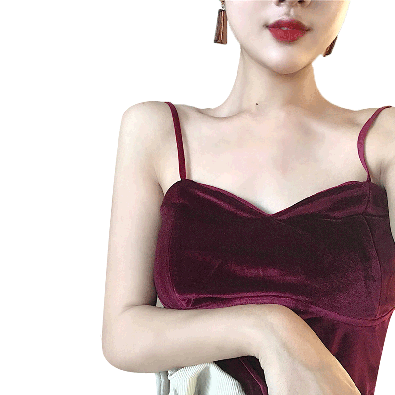 復古港味chic性感氣質絲絨裹胸收腰上衣修身顯胸V領背心吊帶女春