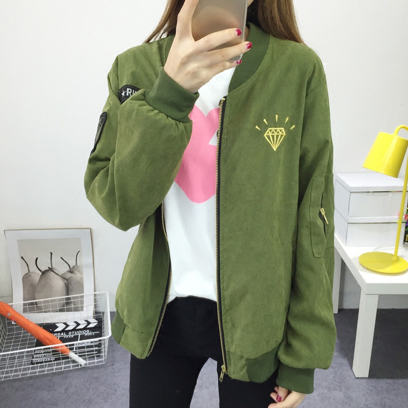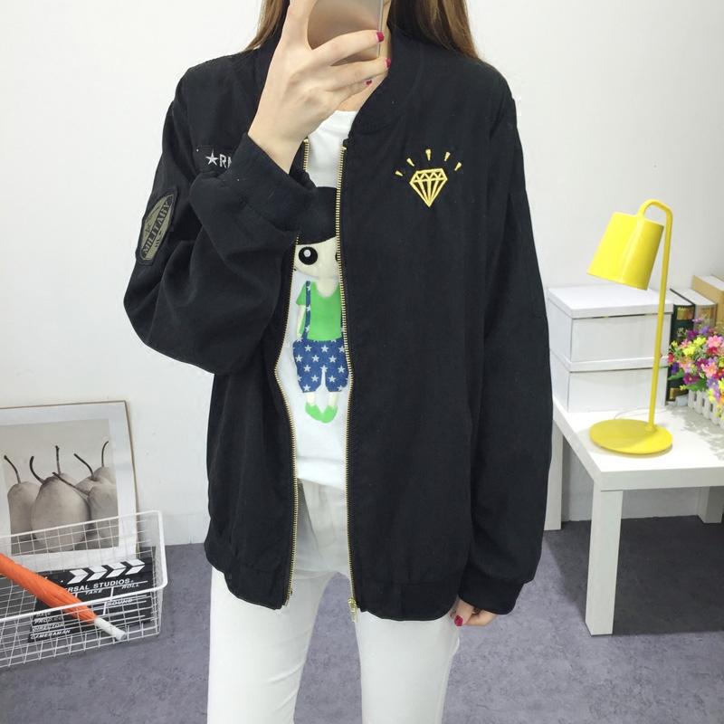2016新款春秋韓版原宿工裝風寬松棒球服BF風純色學生大碼外套女潮