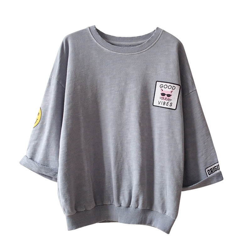 / 春裝新款韓版潮學生百搭寬松印花T恤女裝七分袖上衣小衫體恤