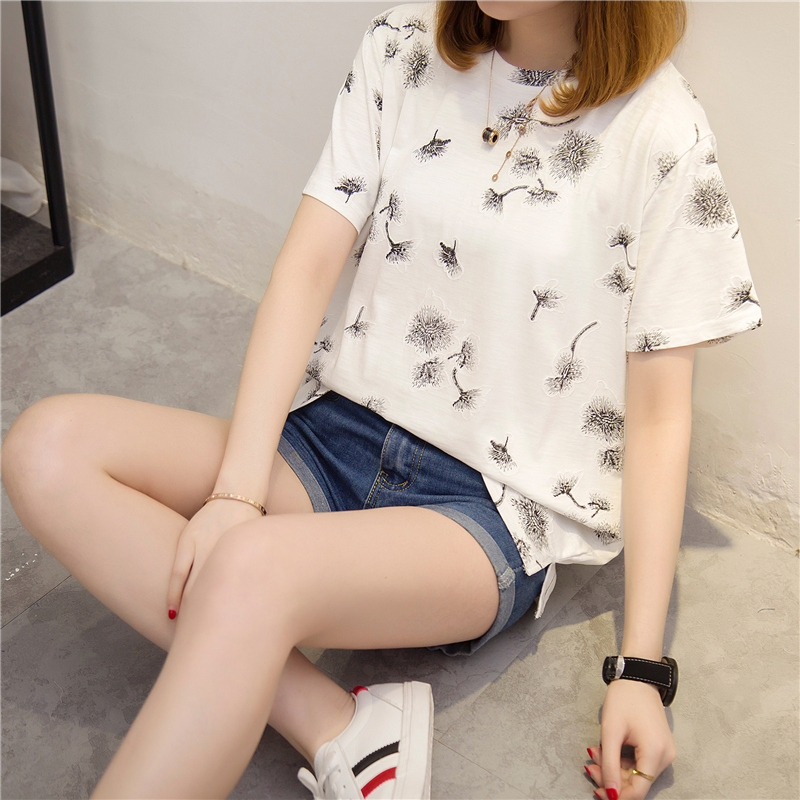 夏裝新款女潮中長款休閑寬松顯瘦短袖t恤女夏bf風小清新上衣