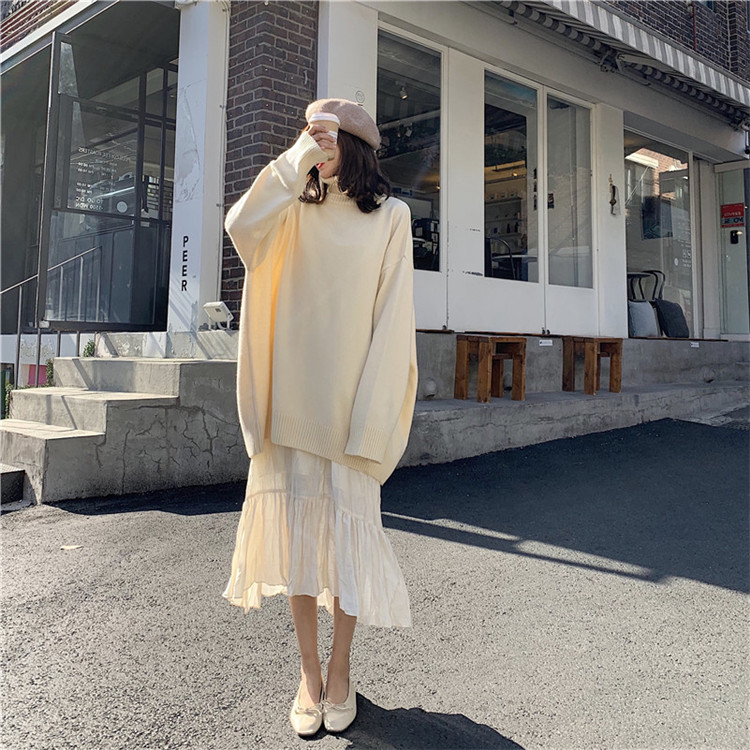 慵懶風寬松顯瘦高領長袖套頭毛衣女2018新款韓版純色加厚針織上衣