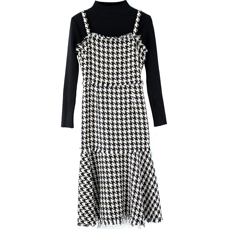 / 初秋兩件套中長款吊帶連衣裙洋氣套裝女裙子2018新款長袖針織衫潮