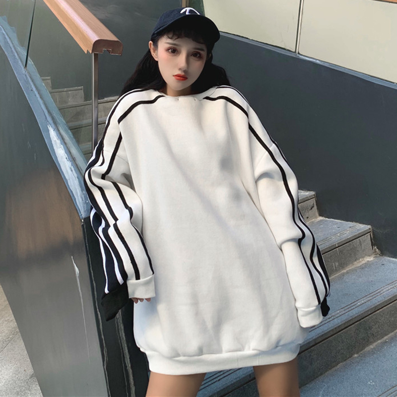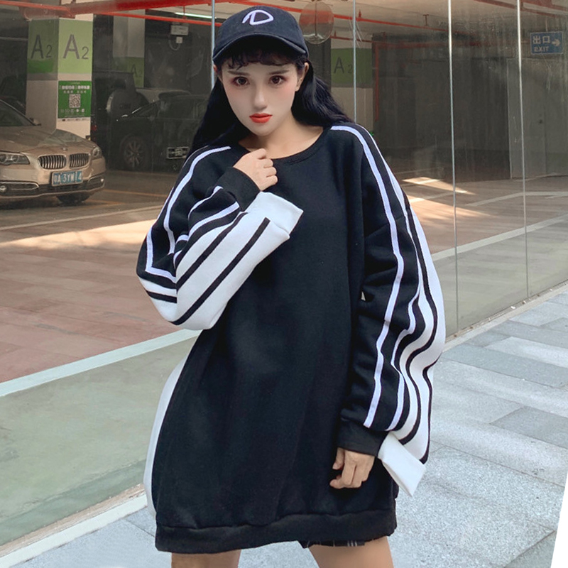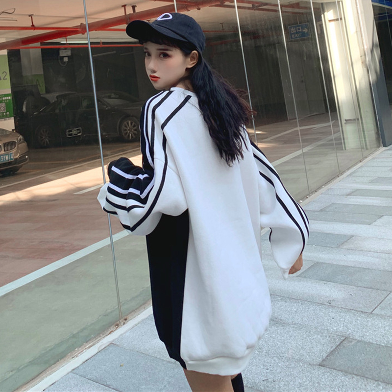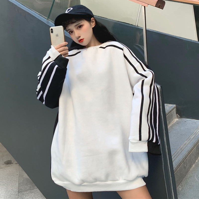 / 韓版寬松長袖衛衣2018新款女秋冬裝時尚條紋外套學生休閑圓領上衣