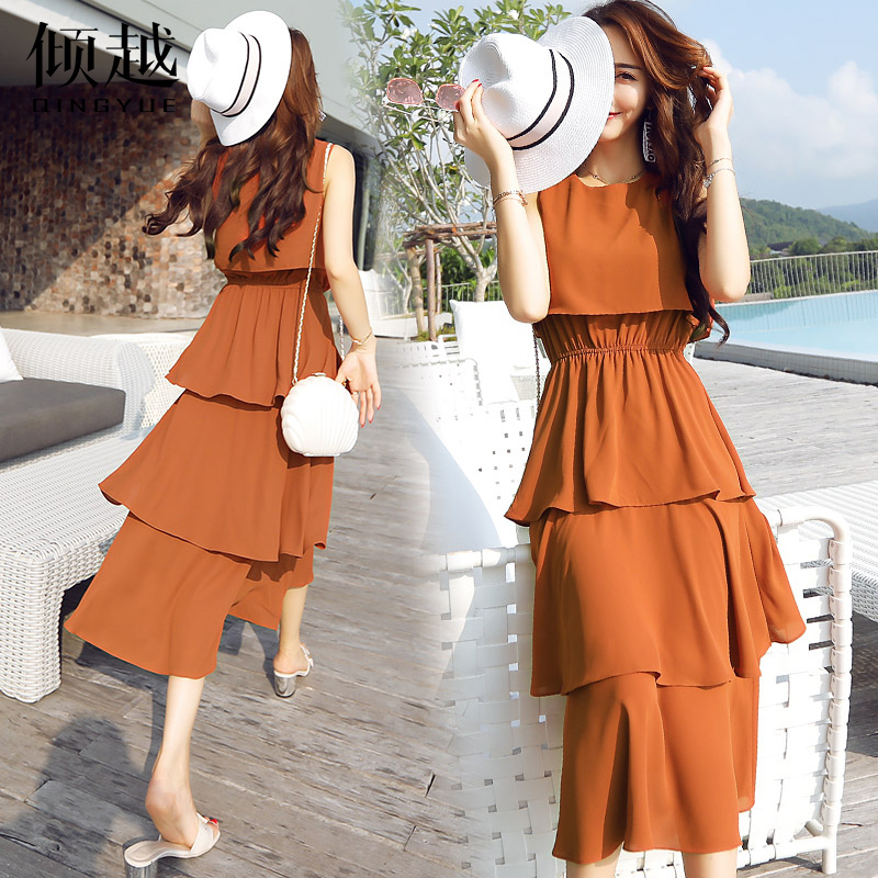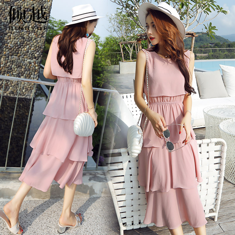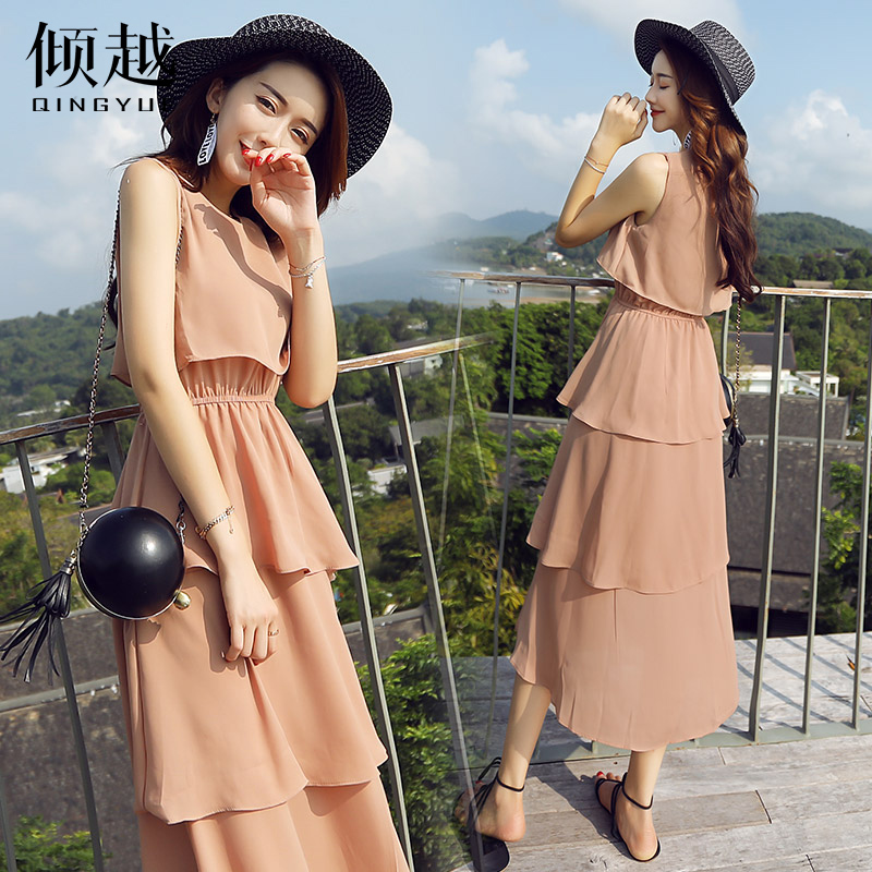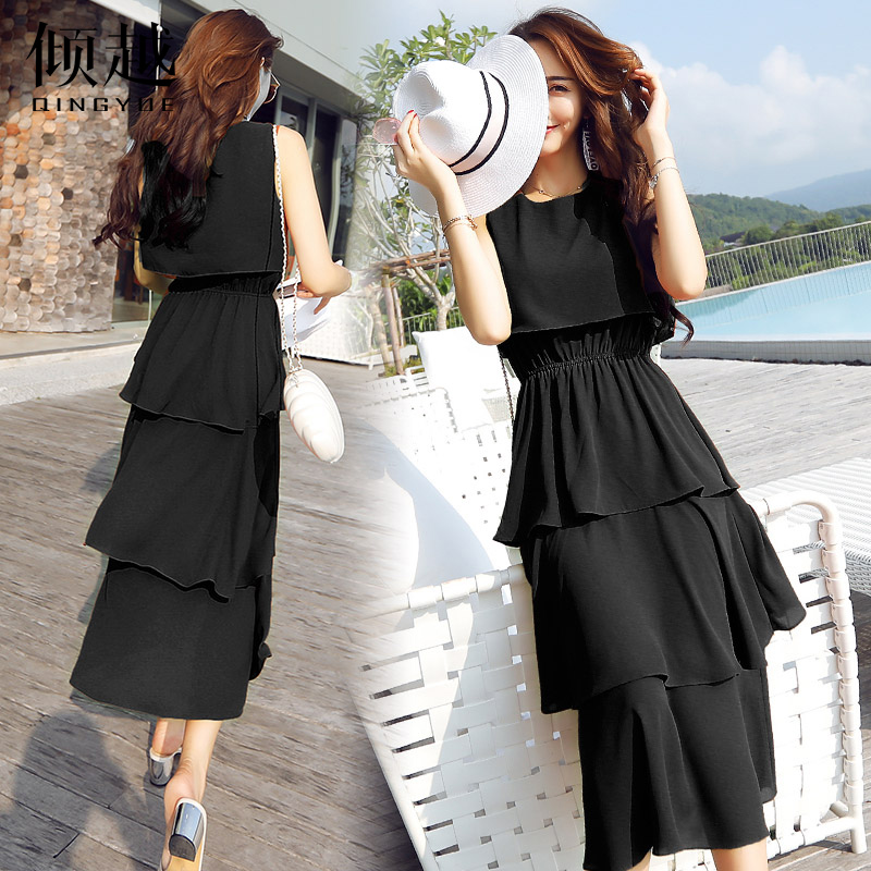 雪紡連衣裙2017新款女夏無袖顯瘦蛋糕蓬蓬裙長款小仙女氣質淑女潮
