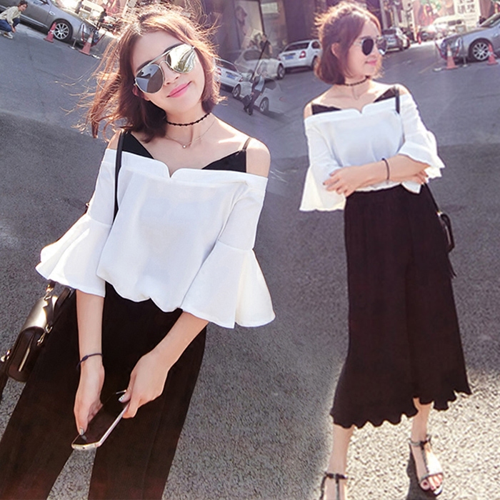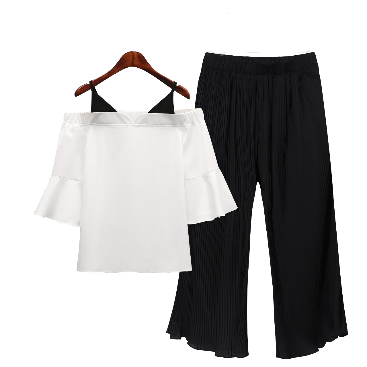 / 春裝新款韓版一字領闊腿褲兩件套名媛氣質小香風時尚套裝女潮