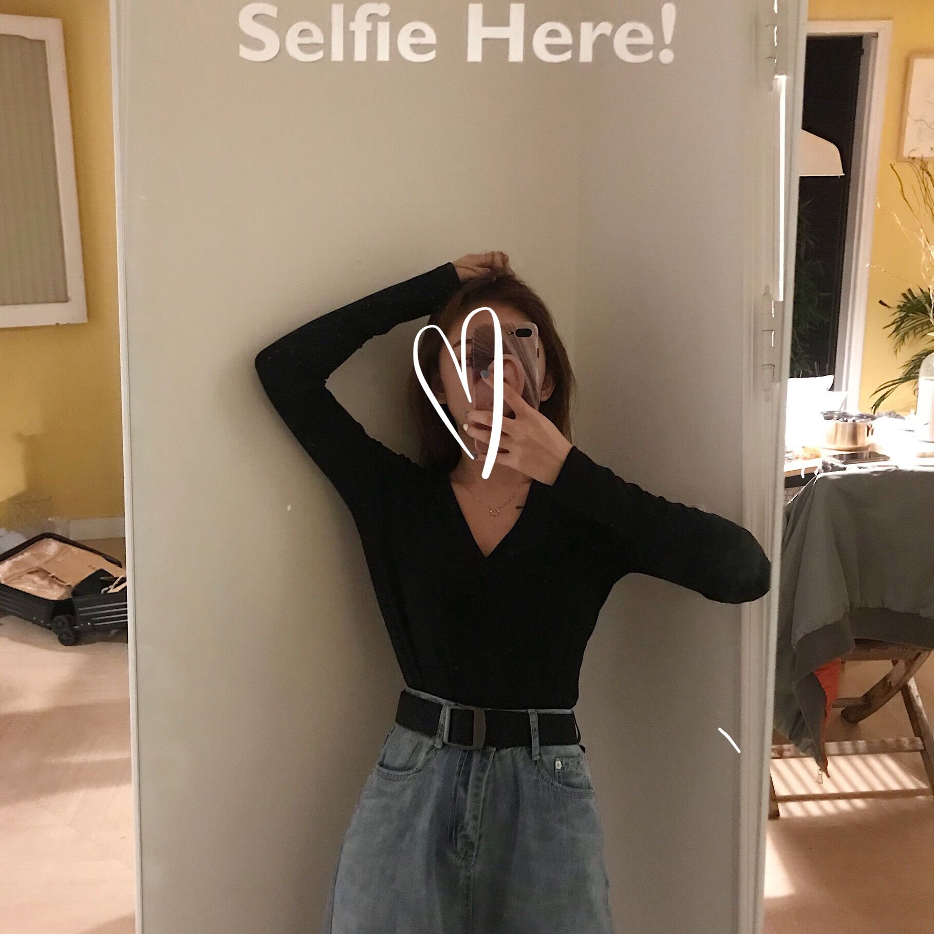 韓風早秋純色V領長袖修身chic上衣女T恤顯瘦簡約基礎百搭打底衫