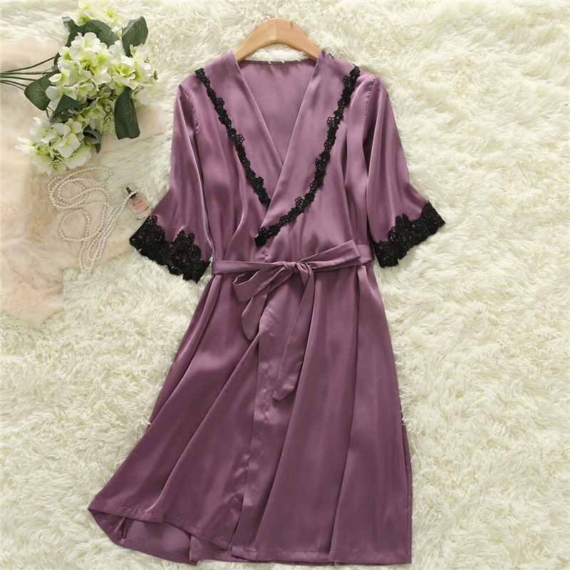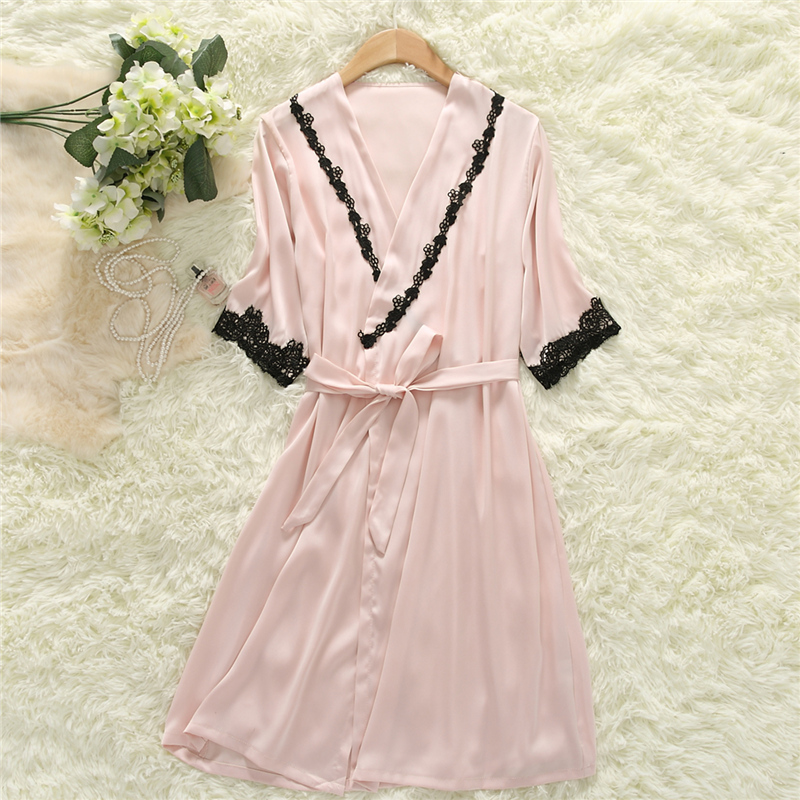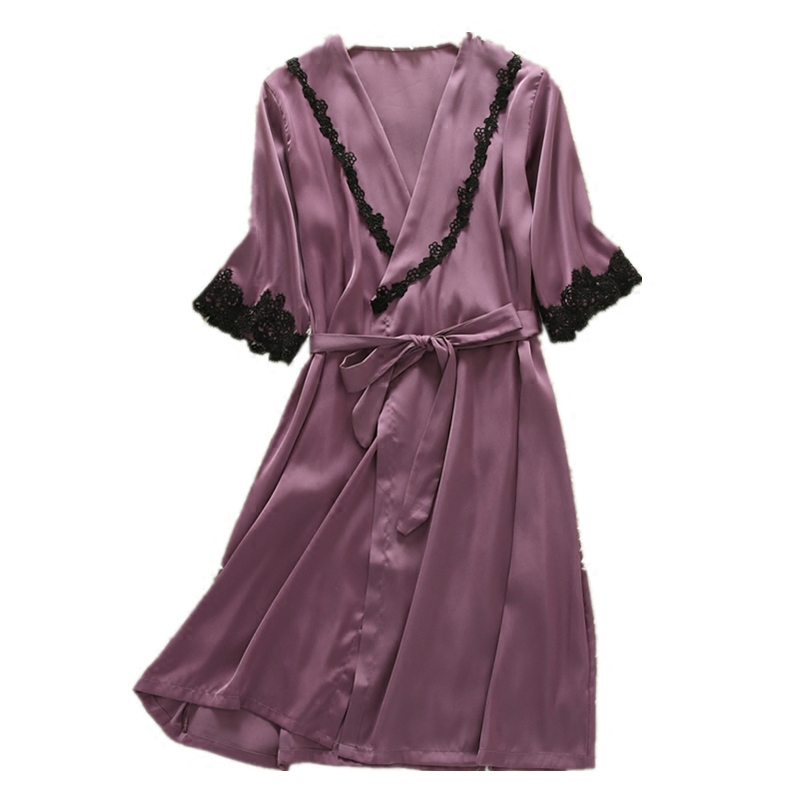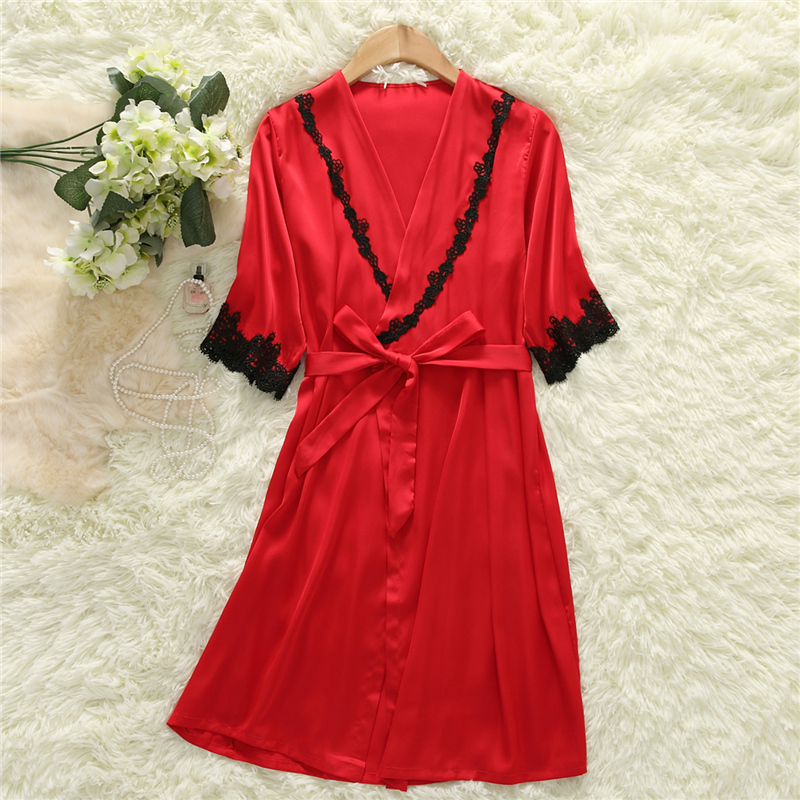 零適睡袍女夏天薄款短袖性感睡衣女絲綢浴袍女士蕾絲春秋季家居服