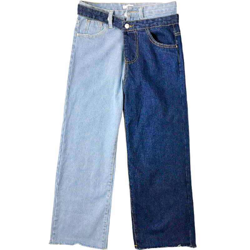 / 牛仔褲女夏2018新款女裝寬松復古拼色九分褲韓版顯瘦高腰闊腿褲子