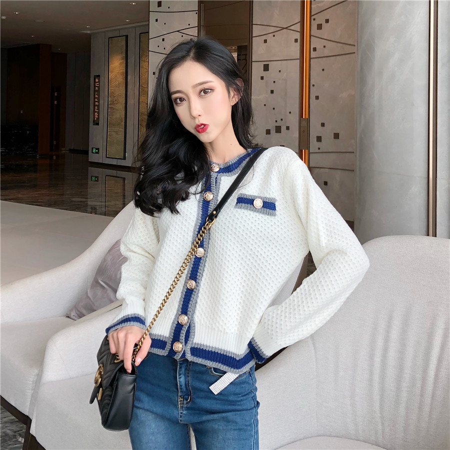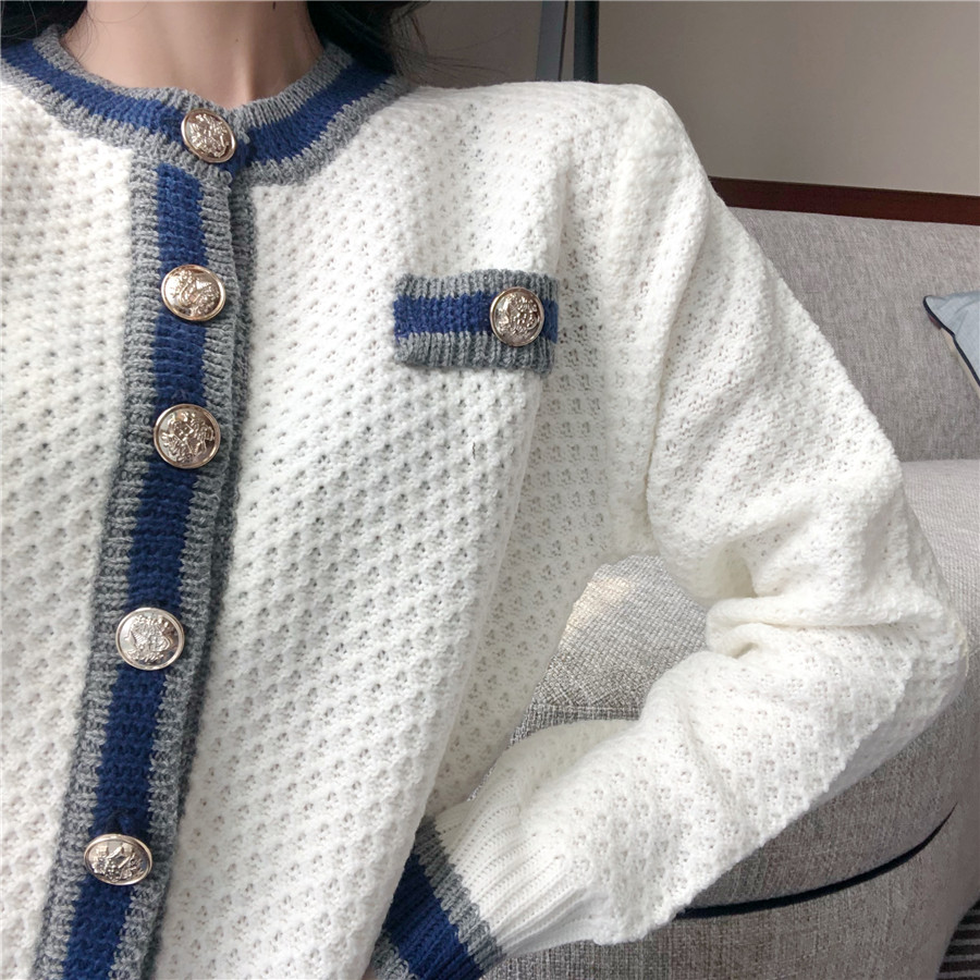 / chic早秋針織衫韓版小香風圓領珍珠扣百搭針織開衫慵懶風毛衣女潮