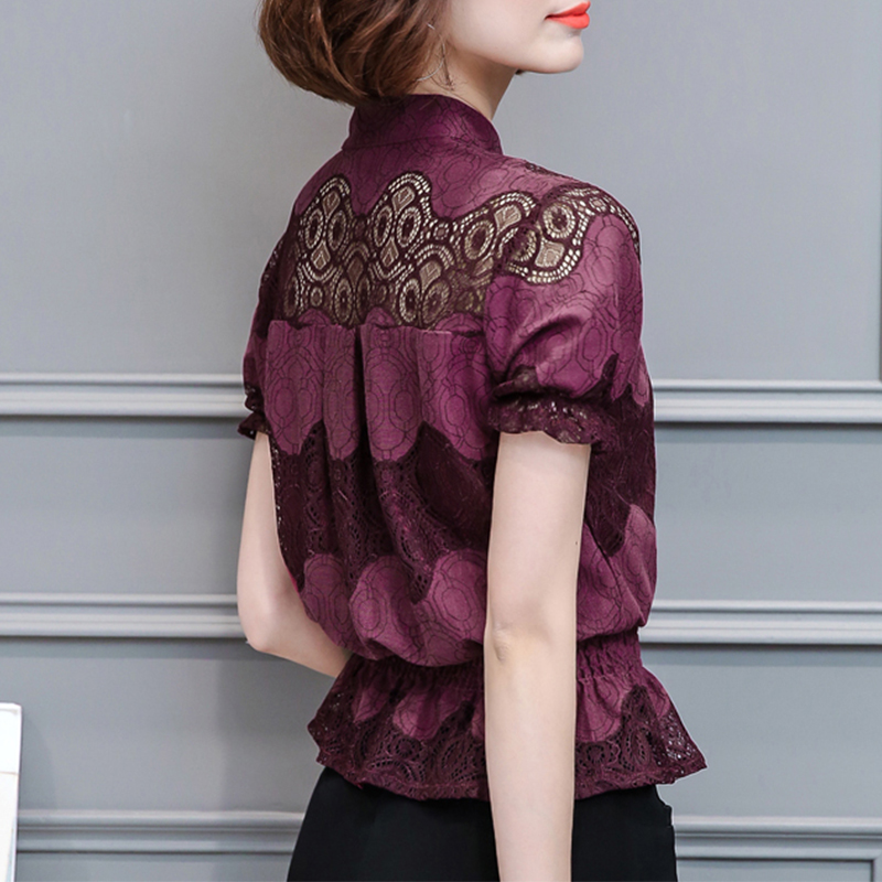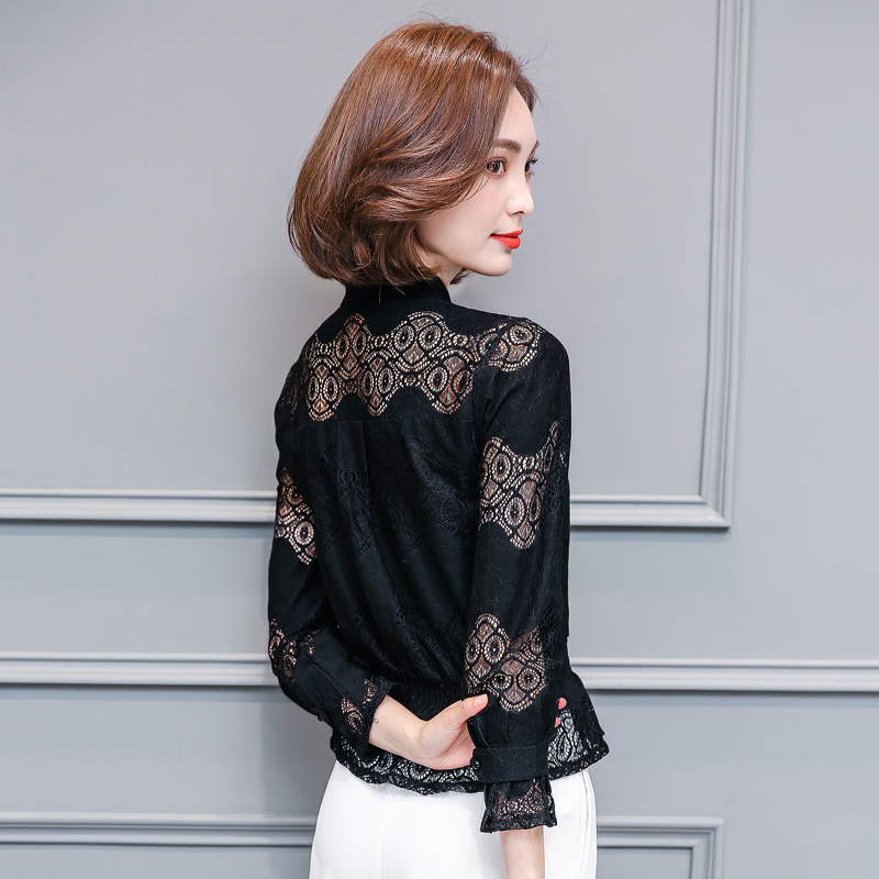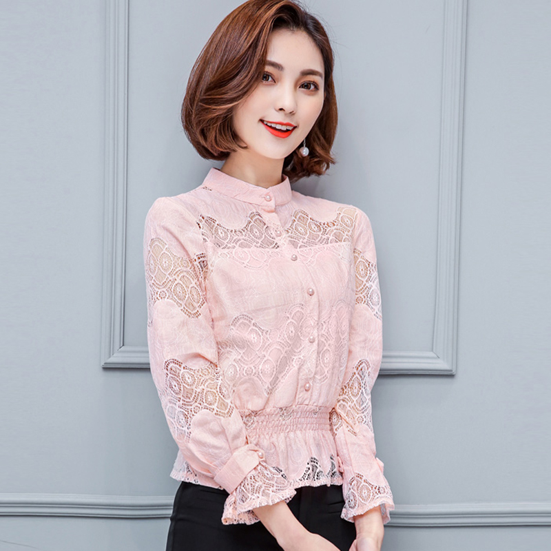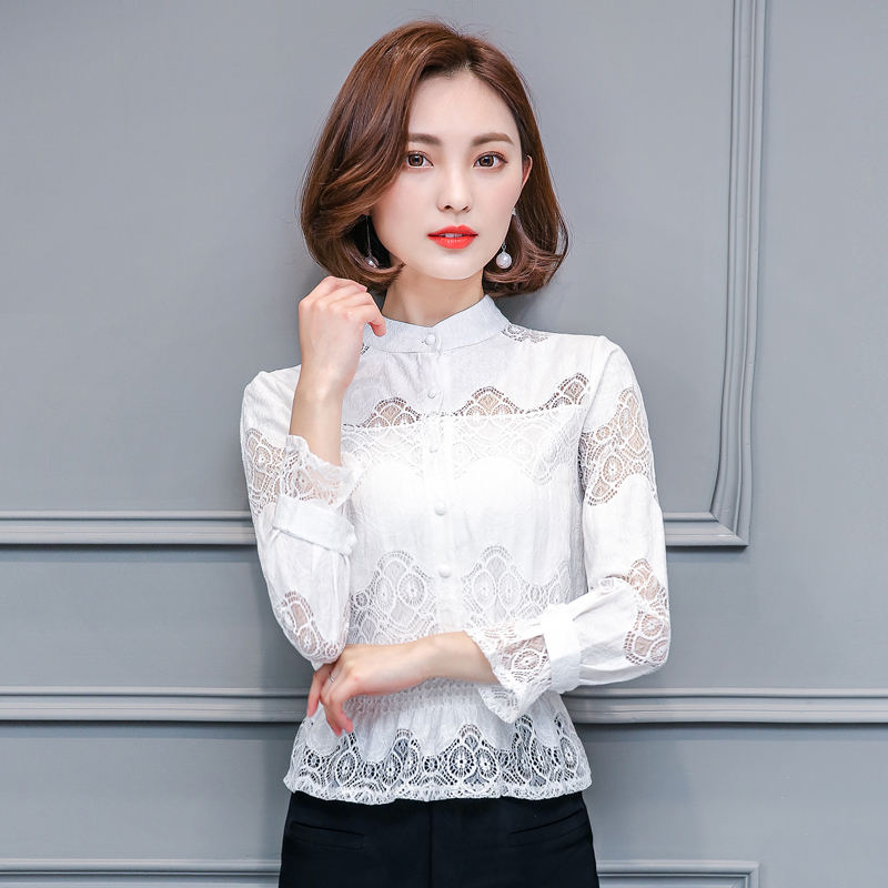 / 夏季大碼女裝2017新款春時尚鏤空蕾絲韓版寬松雪紡長袖上衣小衫