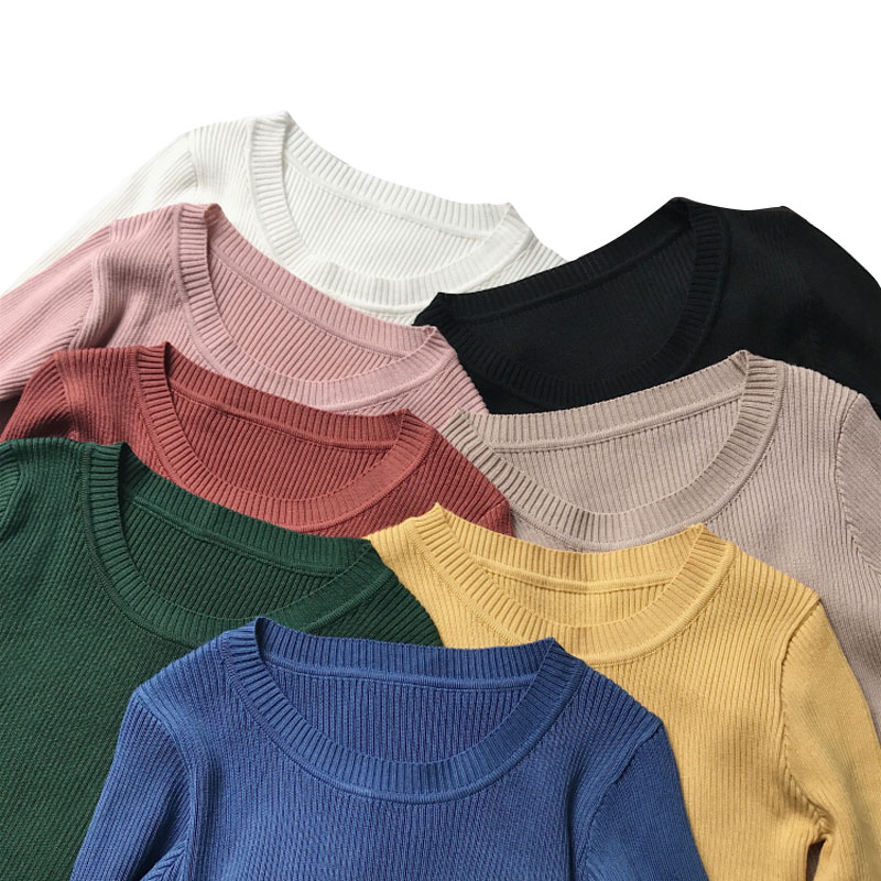 / 秋冬女裝韓版純色百搭圓領套頭毛衣修身長袖打底衫針織衫上衣學生