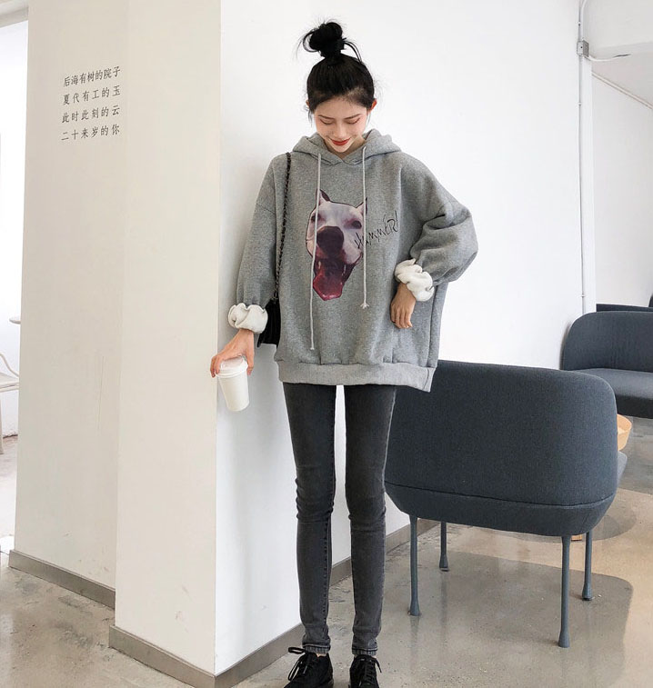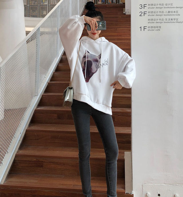 chic上衣慵懶風寬松衛衣女秋冬2018新款韓版時尚連帽加絨印花衛衣